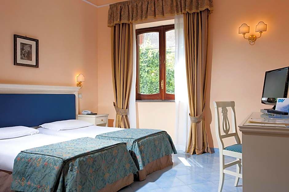 Immerso a Sorrento, questo hotel a quattro stelle unisce l'allegro fascino italiano a scenari drammatici. La ristorazione in loco comprende Terrazza Iaccarino, un ristorante italiano tradizionale, e Vesuvio, che propone sapori americani, britannici e italiani — perfetti per gusti diversi. Un elegante bar accompagna i pasti, mentre terrazze e balconi incorniciano viste sulla montagna o sul giardino, trasformando ogni visita in un momento degno di una cartolina.